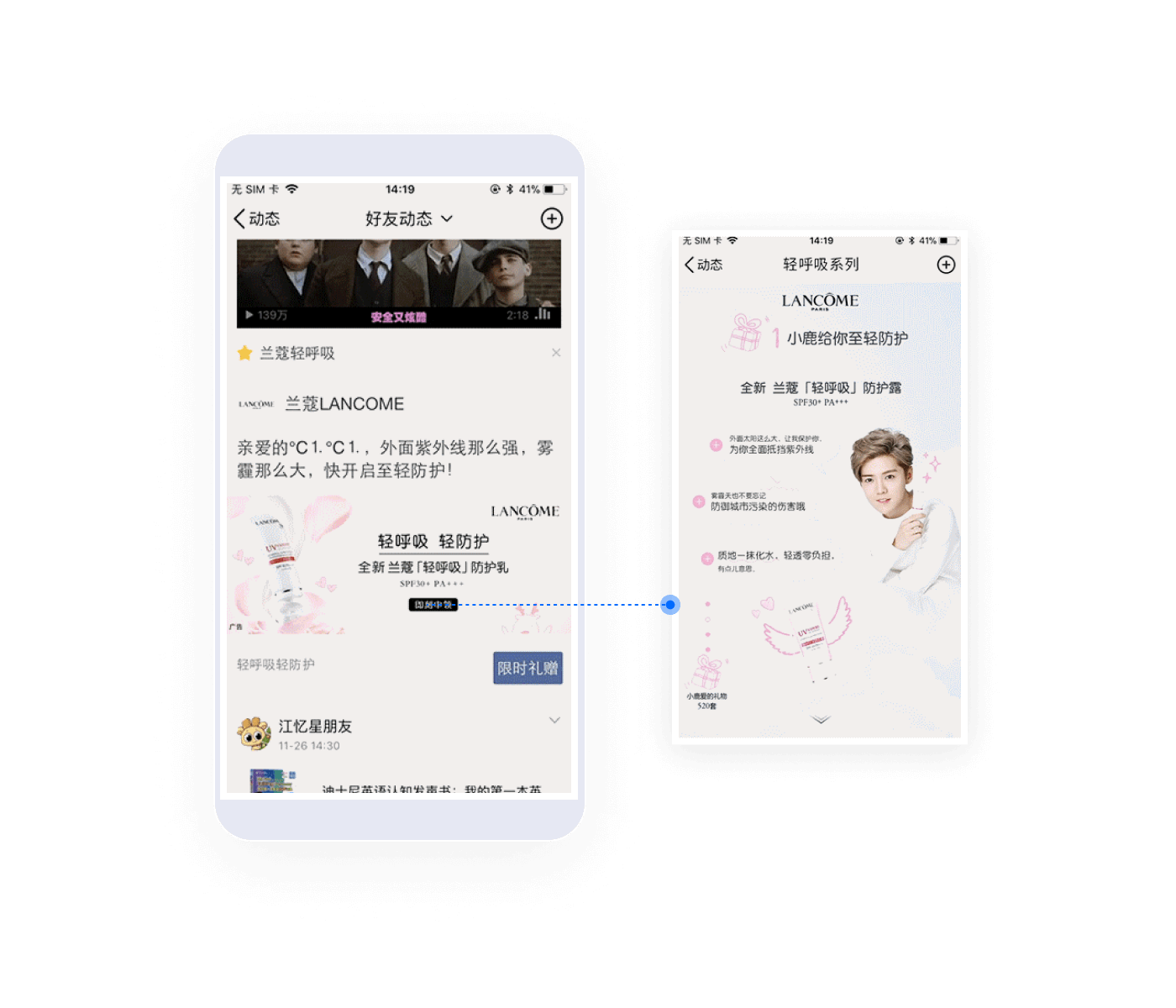 首頁(yè)信息流第七條:位于首頁(yè)第七條位置,穿插在好友動(dòng)態(tài) 中,具備高度原生、低打擾的特征,支持全開(kāi)放式評論:評論 全員可見(jiàn),可置頂5條優(yōu)質(zhì)評論;支持隨心互動(dòng)、多圖輪播、 本地廣告、圖文和視頻等展示形式。